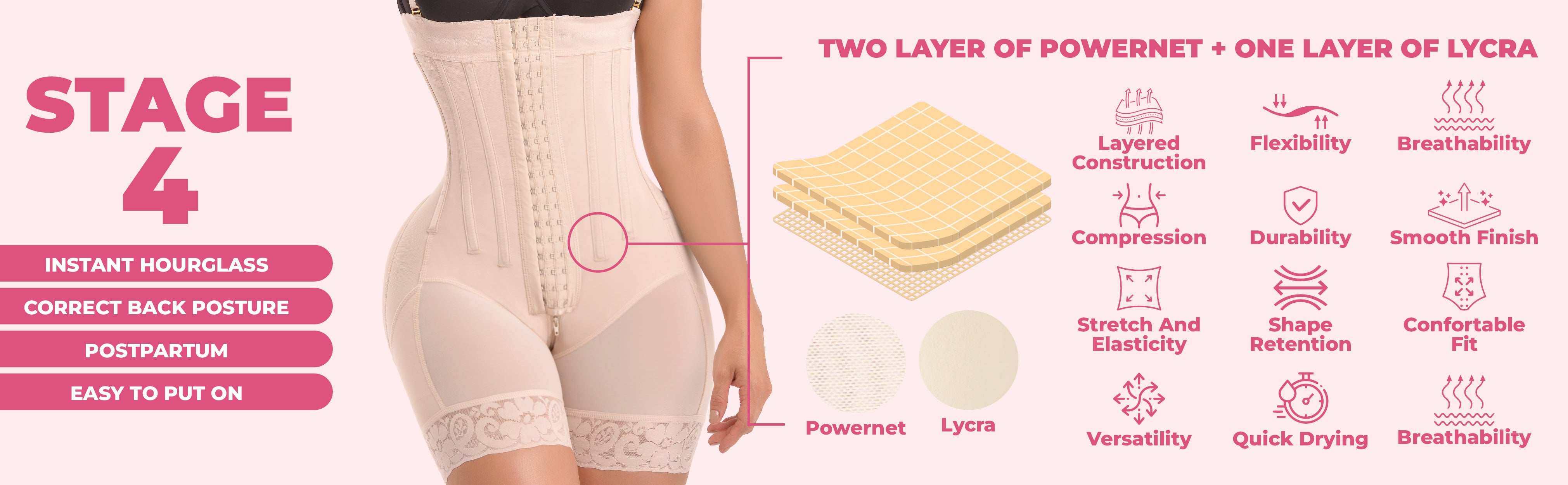 This high-compression faja is designed with 9 shaping steel rods that provide firm tummy and back support, helping to reduce your waistline while preventing glute sagging. Its triple Powernet front panels create maximum abdominal control, smoothing your figure instantly.