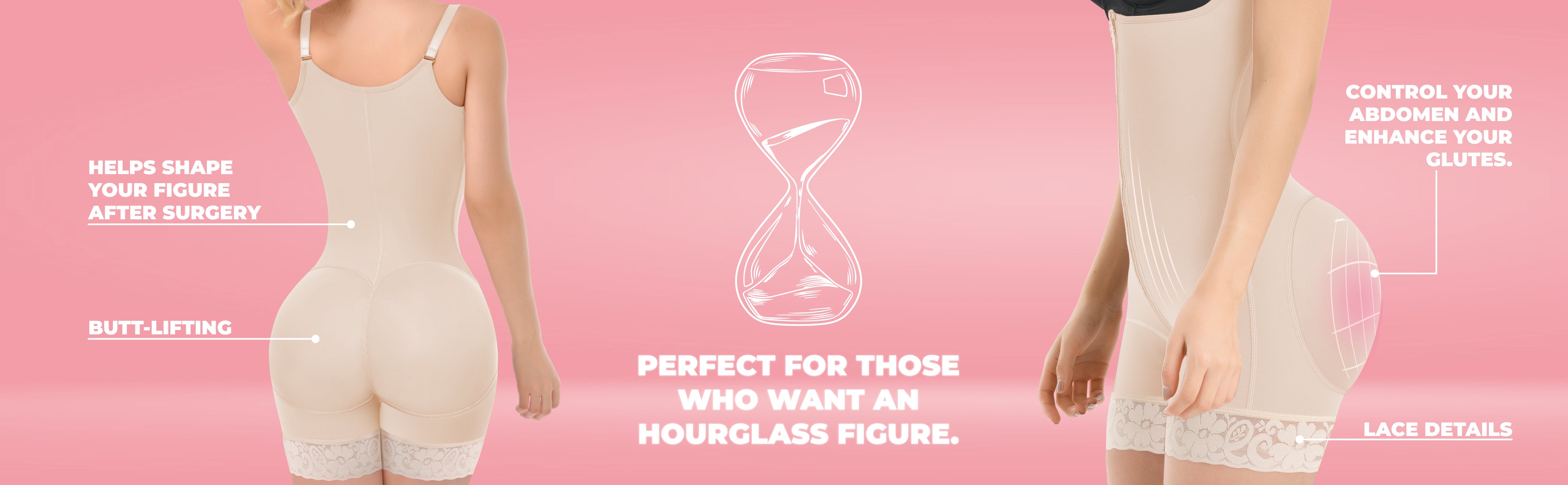 - Latex with Lycra Shapewear: This garment is lined with lycra on the inside and frontal latex on the outside. This garment has medium compression, which is just the right amount to wear it every day. This garment offers all the extra control and compression your body needs to obtain the hourglass figure.