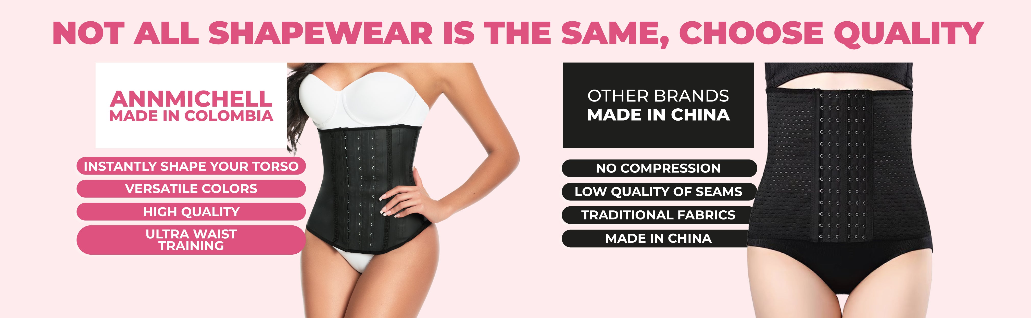 - About the garment: Ann Michell’s latex waist trainer will reduce four inches off your waist. It helps sculpt and smoothen your waist. The flexible boning of the waist trainer helps correct your posture. This design prevents the waist trainer from rolling up or moving. This design has three hooks and eye closure, which can allow you to increase compression, which can promote weight loss.
