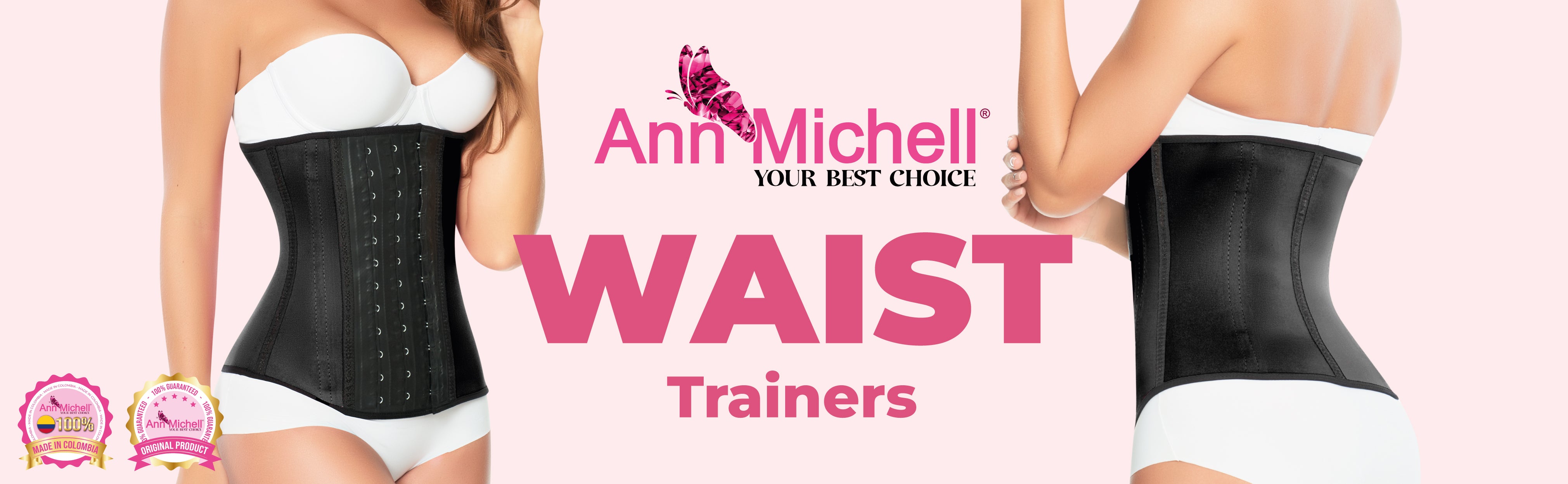 - About the garment: Ann Michell’s latex waist trainer will reduce four inches off your waist. It helps sculpt and smoothen your waist. The flexible boning of the waist trainer helps correct your posture. This design prevents the waist trainer from rolling up or moving. This design has three hooks and eye closure, which can allow you to increase compression, which can promote weight loss. This waist trainer offers many different types of prints and colors, so you can lose weight with style.