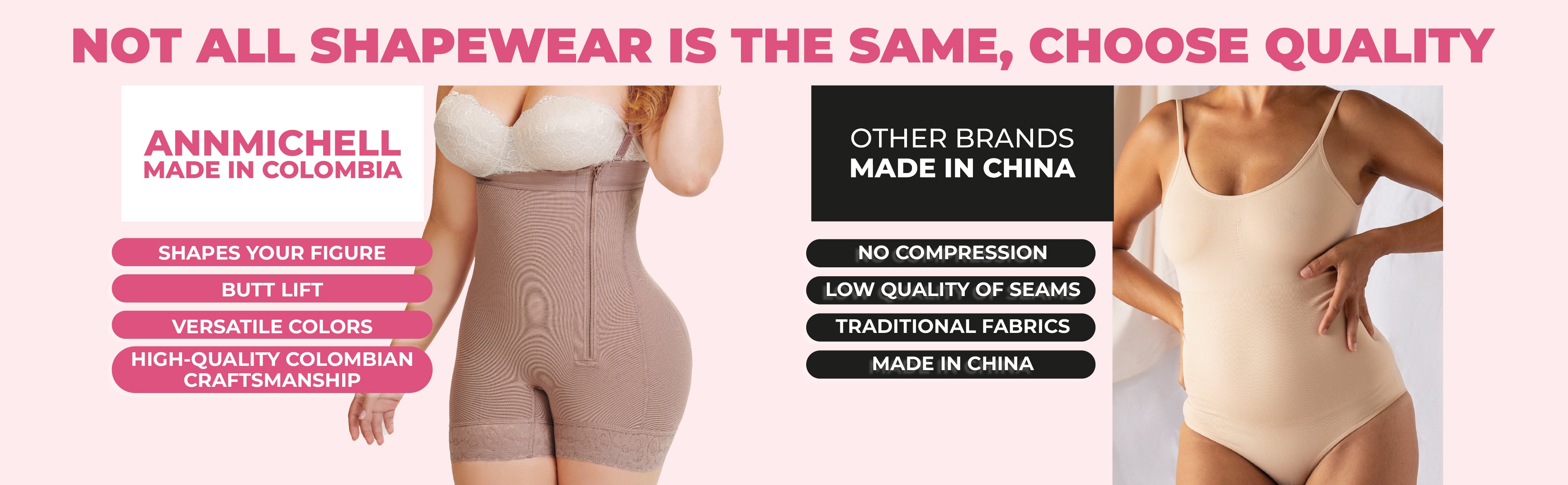 Each garment is exclusively crafted by us in Colombia and is unique in the market with three front layers of premium Powernet for maximum shaping and durability.
