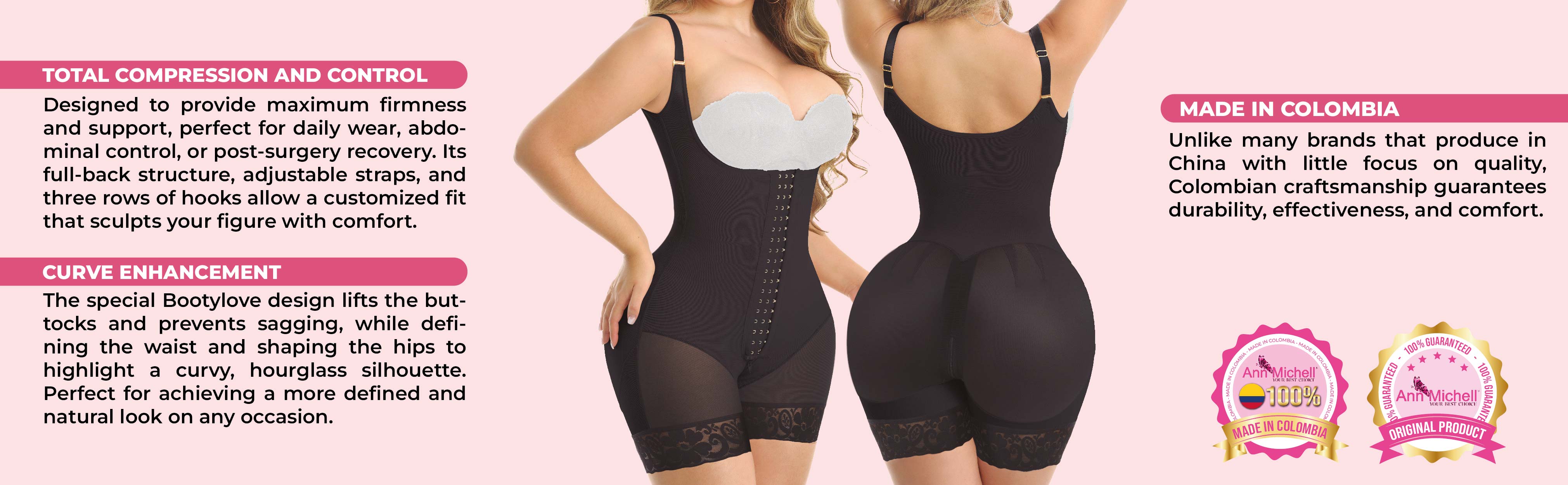 Colombian shapewear, Stage 4 faja, BBL shapewear, BootyLove faja, Powernet compression, tummy control body shaper, Colombian girdle, post-surgery faja, postpartum recovery faja, Ann Michell shapewear, made in Colombia shapewear, curvy hourglass faja, high compression shapewear.