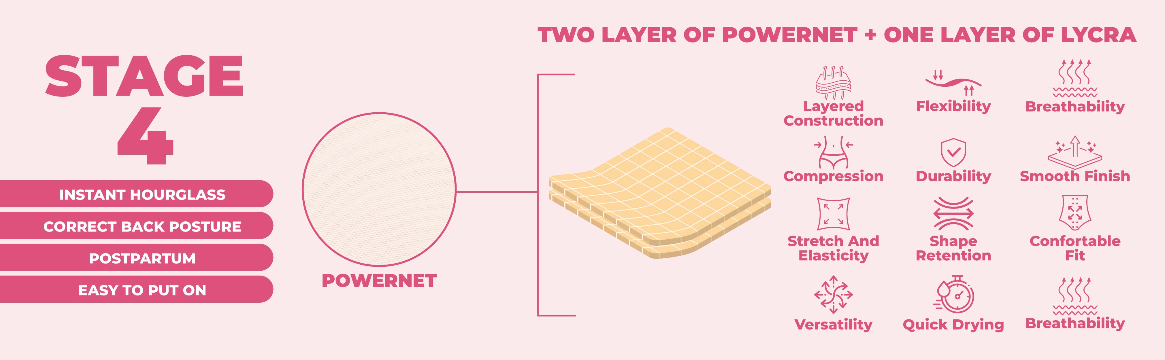 - BootyLove BBL Shapewear: In this garment, we use 3 layers of powernet fabrics, including a Lycra Trim Shape layer, which help you get back to your preferred shape after surgery. This garment is perfect to wear after a cosmetic surgery or pregnancy to provide you with high compression to effectively slim down your waist and correct your posture.